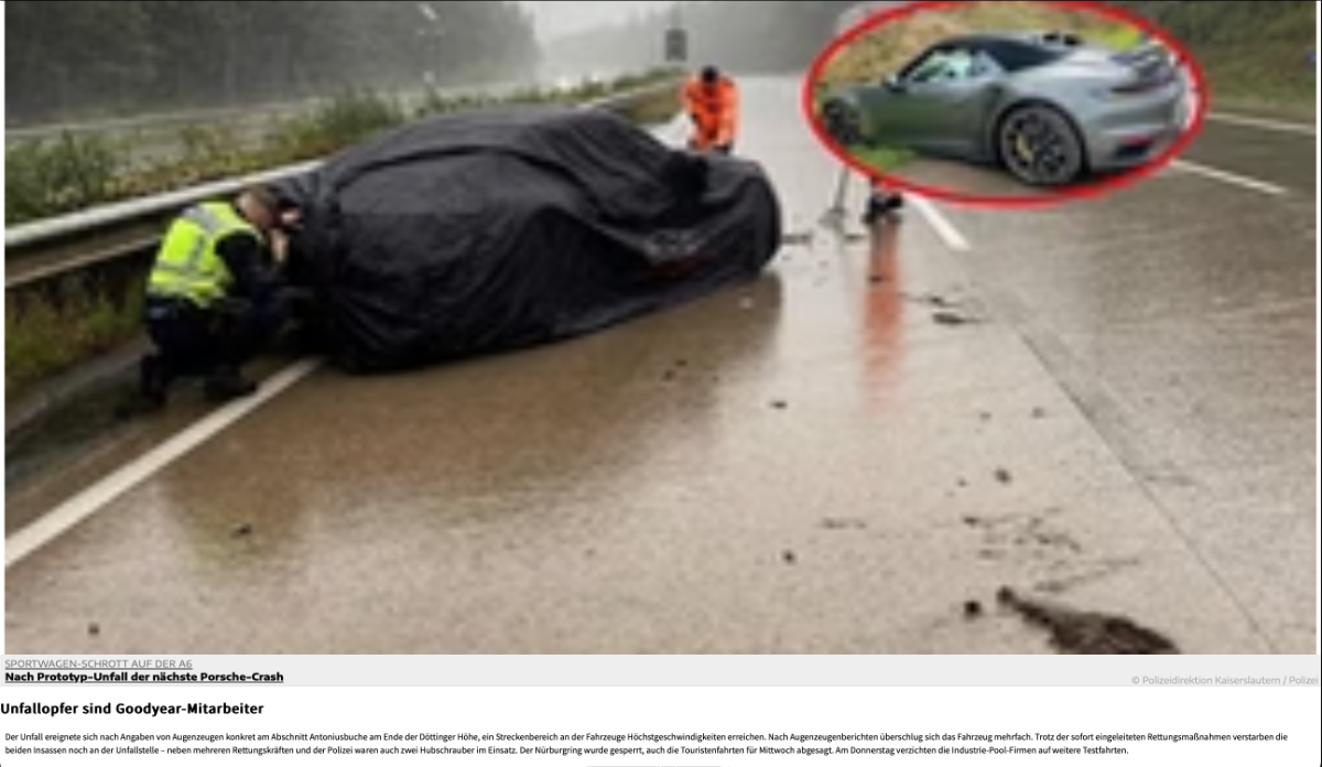 "Nach LW-Informationen platzte Sekundenbruchteile vor der Tragödie ein Reifen bei weit mehr als 200 Stundenkilometern."