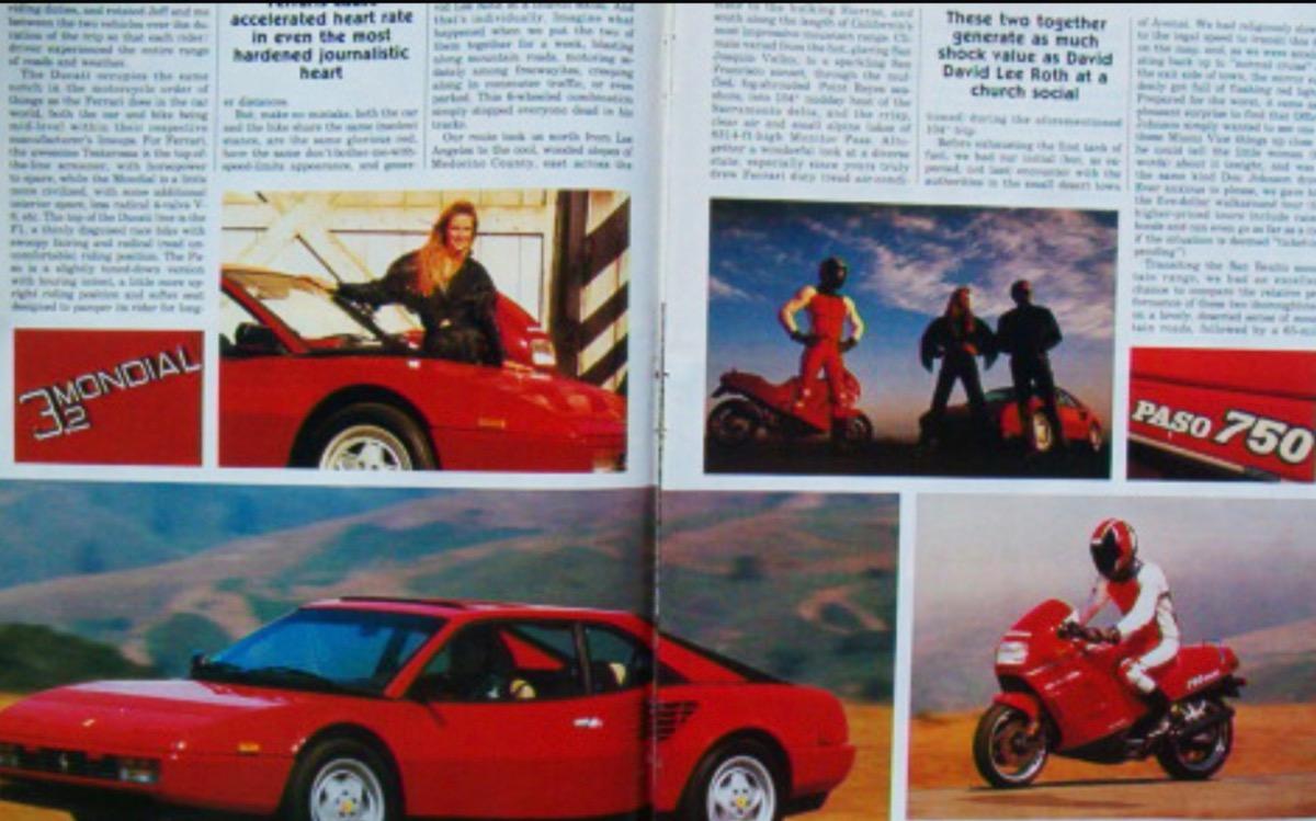 Neben der Tatsache, dass ein roter Mondial 3.2 mit beiger Innenausstattung immer schon mein Jugendtraum war, hatte mich damals auch ein Artikel in einer amerikanischen Zeitschrift inspiriert, weshalb ich mir dann ein paar Jahre später auch noch das passende Motorrad dazu gekauft hatte, zufälligerweise ebenfalls in der Schweiz.