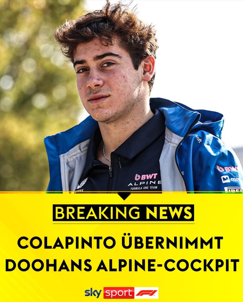 Ich hoffe zwar für Colapinto das er es hinbekommen wird bei Alpine. Leicht wird es jedoch nicht für ihn. Wie groß das in ihn gesteckte Vertrauen ist beweist sein Fahrervertrag. Der ist mit einer Limitierung auf fünf Rennen sogar kürzer gestrickt als die von Doohan gefahrenen sechs Rennen...