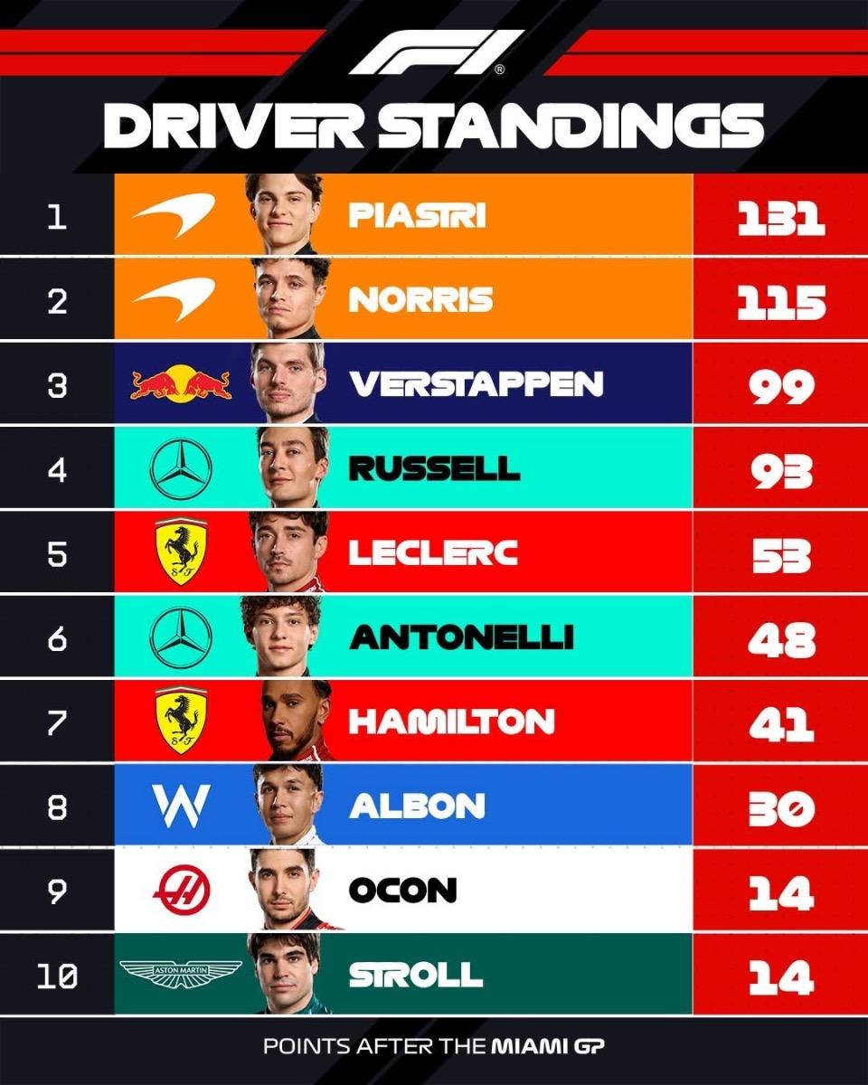 Die Überlegenheit von McLaren war gestern schon beeindruckend. Als Norris nach dem Staat erst mal auf P6 zurück fiel und dann zu pushen begann, da hat man mal das wahre Potenzial des McLaren erkennen können. Ich habe so meine Zweifel das Red Bull mit dem groß angekündigten Update in Imola überhaupt Verbesserungen erzielen wird. Verstappen wirkte gestern nach dem Rennen ziemlich leer und machte eigentlich zwischen den Zeilen unmissverständlich klar, dass gar keine Lösung in Sicht wäre. Das Team wisse noch immer nicht genau was mit dem Auto falsch läuft und deswegen wisse man auch nicht genau was ist am Fahrzeug konkret geändert werden muss. Red Bull ist total aufgeschmissen gerade. Der neue Unterboden, welcher in Miami nur an Verstappen Auto geschraubt wurde, soll ebenfalls null Verbesserung am Auto gebracht haben. Die Updates funktionieren auch weiterhin nicht.