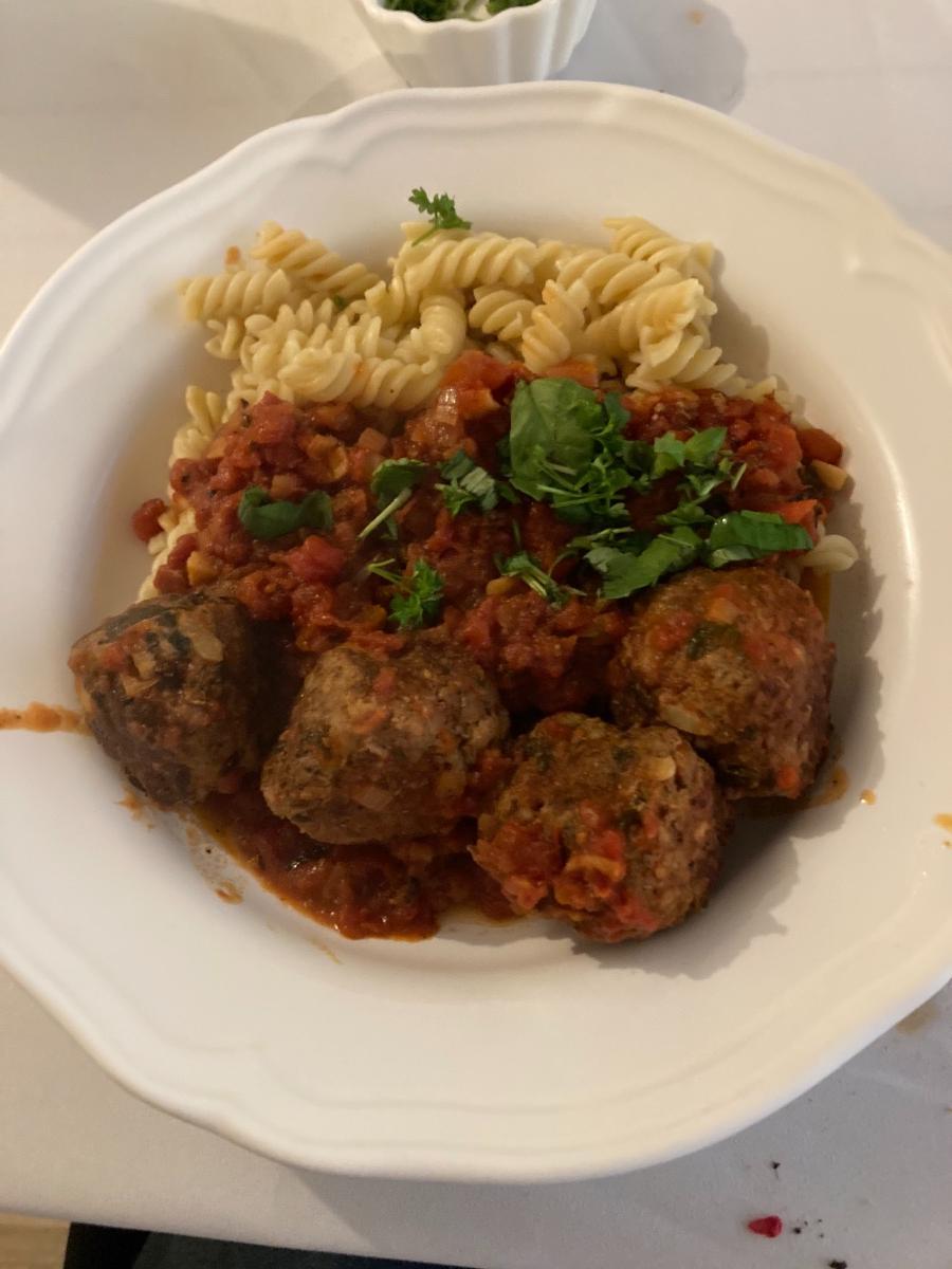 Meatballs, viel frischer Knoblauch, Schalotten, gehackte Tomaten, viel Parmesan, frische Kräuter und nur mit Salz und Pfeffer würzen….hmmmm…..