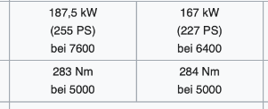ja das habe ich auch gesehen, die 227 PS sind nicht plausibel