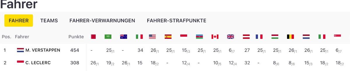 Die Hälfte davon (nämlich genau 75) hat Verstappen durch 3 Siege auf dem Konto, wo Charles ausgefallen ist (also 0 Punkte gemacht hat). Alleine durch diese drei Rennen hätte es alleine aus psychologischen Gründen einen großen Unterschied gemacht.