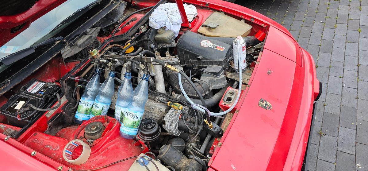 Dritter Test: Alle Einspritzdüsen nacheinander abgezogen zum Starten, so dass er jeweils nur auf dreien läuft, hat auch nichts getan, Auto lief jeweils gleich gut schlecht und lange.