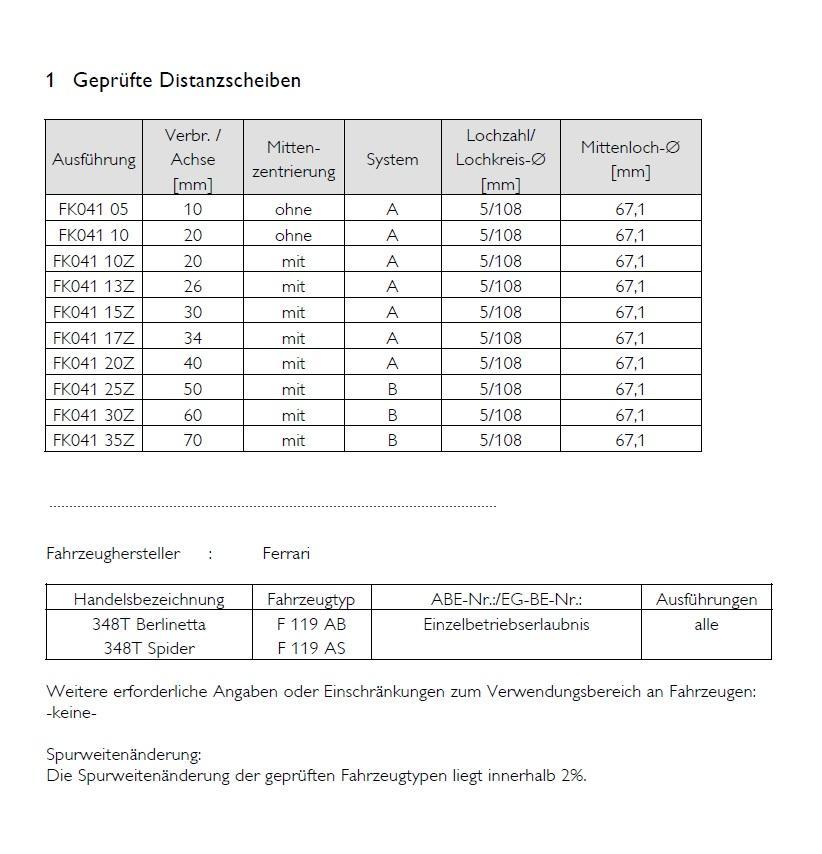 360 Modena Felgen auf Ferrari 348 eintragen lassen