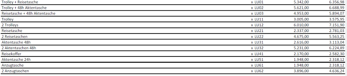 Krass finde ich aber die Optionen fürs Reisegepäck: