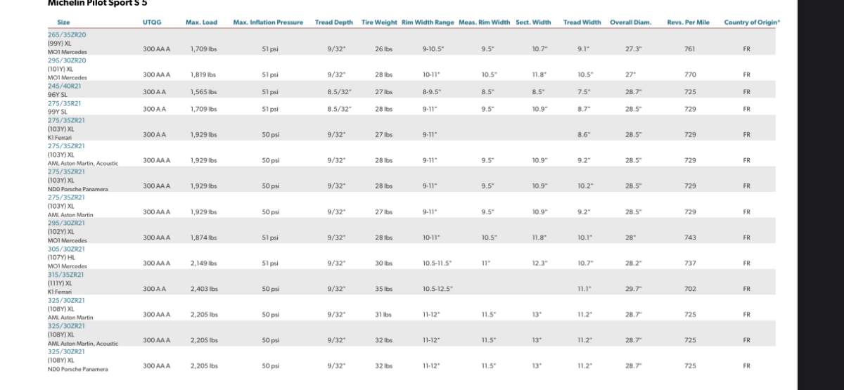 Reifenfülldruck/Luftdruck Michelin PilotSport 5