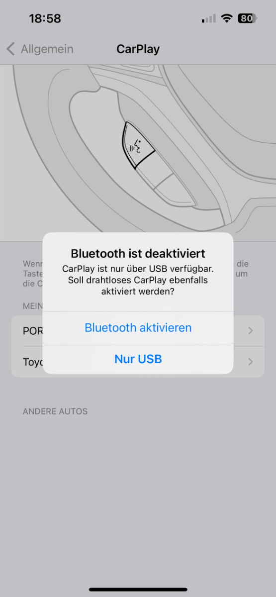 Ich schließe immer mein aktuelles iPhone an. Frage ob CarPlay verbunden werden soll kommt. Ich sage ja, dann funktioniert es. Frage ob das Fahrzeug steht hatte ich noch nie.