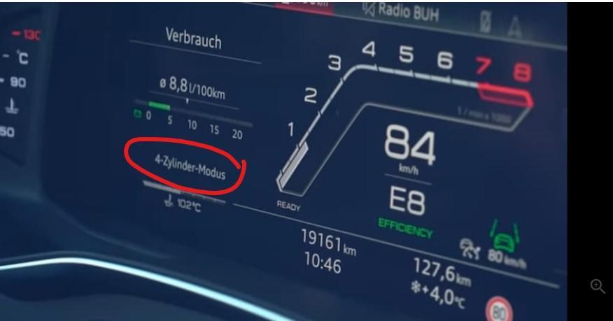 Also ich hab nen RS6 C8 seit 3 Wochen, und noch nie die 4 Zylinder Modus Anzeige gesehen 😆😆😆 Beim RS6 C7, welchen ich Ende 2019 für 2 Monate hatte, hab ich die Anzeige öfters gesehen - also wäre mir sie bekannt.