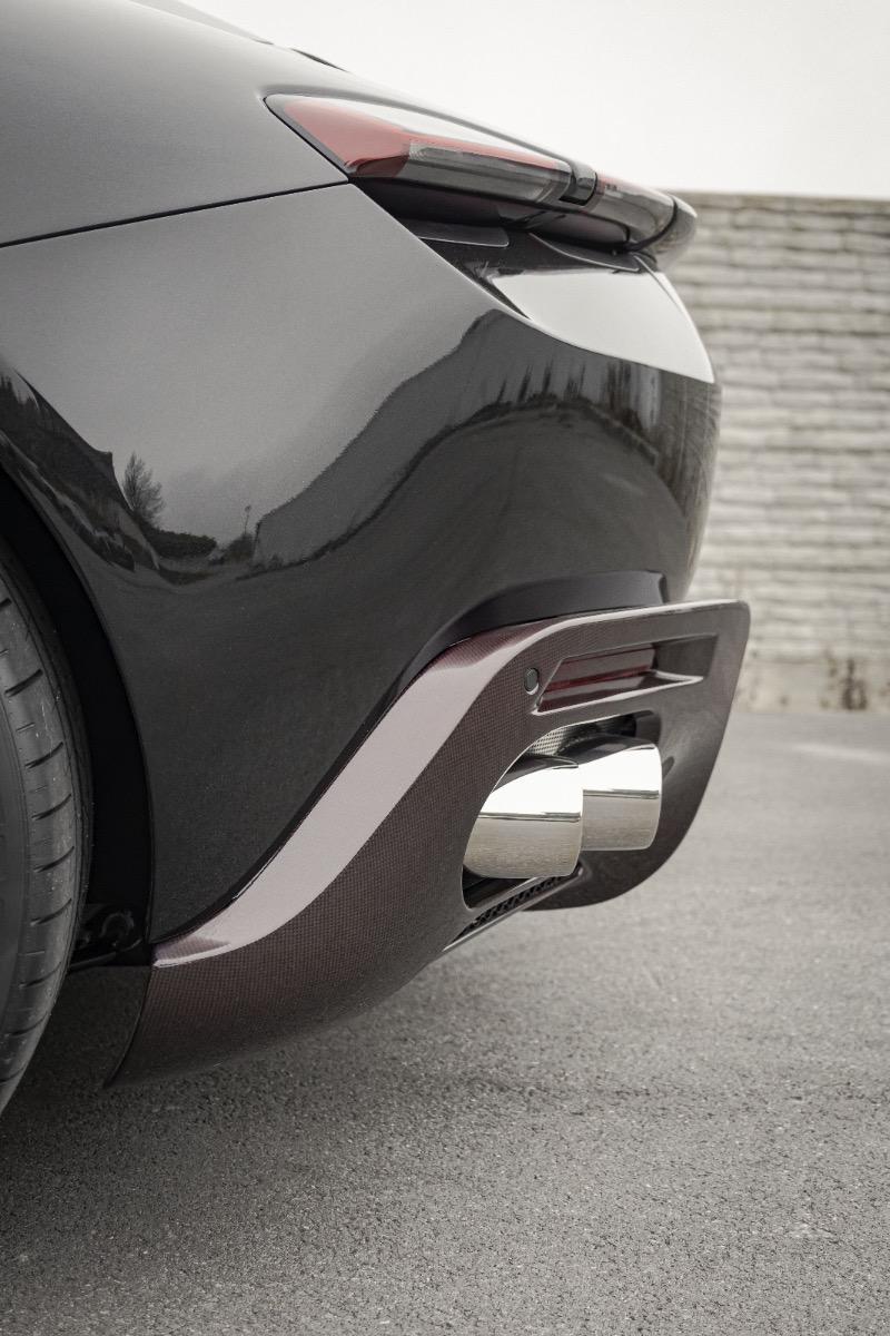 Wirkt auf mich immer noch wie ein Fremdteil (was es ja auch ist) und die Karre hat eh schon zuviele Linien und Formen am Heck. Ich hätte die Endstücke dann schon von der Formensprache her an den Rest angepasst.