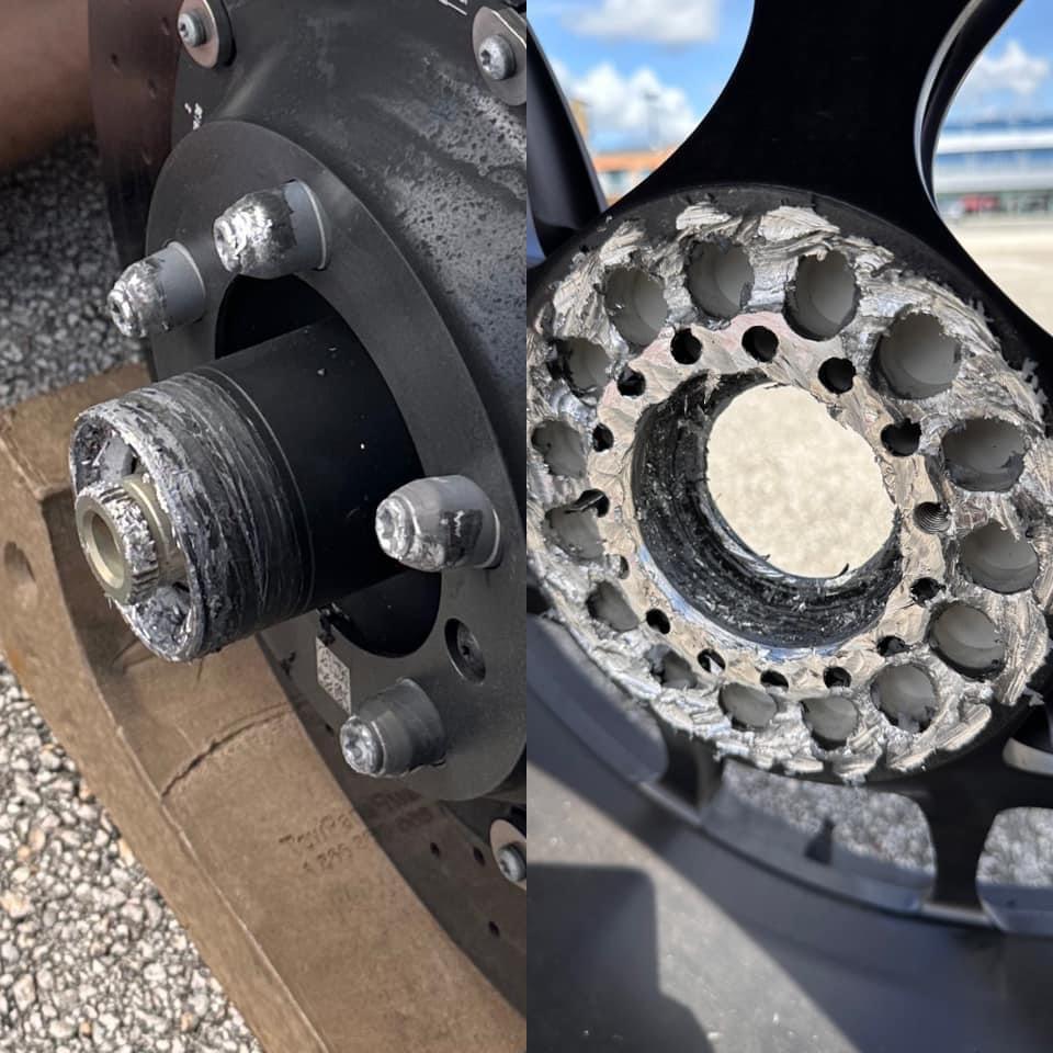 @nero_daytonaAber nochmal gefragt, neugierhalber, bei dem ersten Foto, was war da gebrochen, ein Sicherungsstift oder die Mutter? Wenns "nur" der Sicherungsstift war, haben die Muttern re/li unterschiedliche Drehsinne? Und mit welchem Drehmoment sollen die angezogen werden? Ich würde vermuten so im Bereich 400-800 Nm. Da sollte sich die Mutter auch nicht bei gebrochenem Sicherungsstift so schnell lösen. Die ollen Lambos haben gar keine Sicherung an der Zentralmutter, aber unterschiedliche Gewinde re/li ...