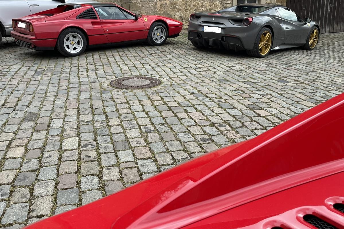Ich nehm', wie angedroht, diesmal den 488 mit den schrill-goldenen Felgen,