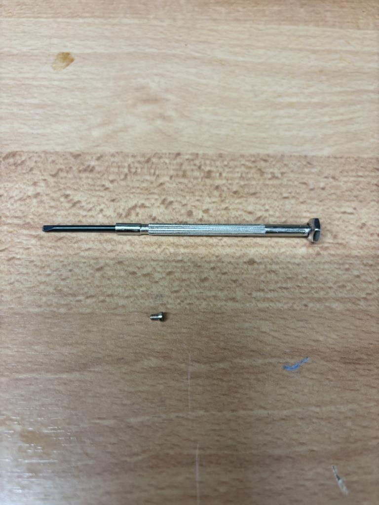 Eine ziemlich kleine Schraube. Hmm, wo bekomme ich denn da am Ostermontag Ersatz her? Ich bin ja für einen Bürohengst ganz gut sortiert in meinem Werkzeugkeller. Aber eher so Richtung Spax und M 4 bis M 6.