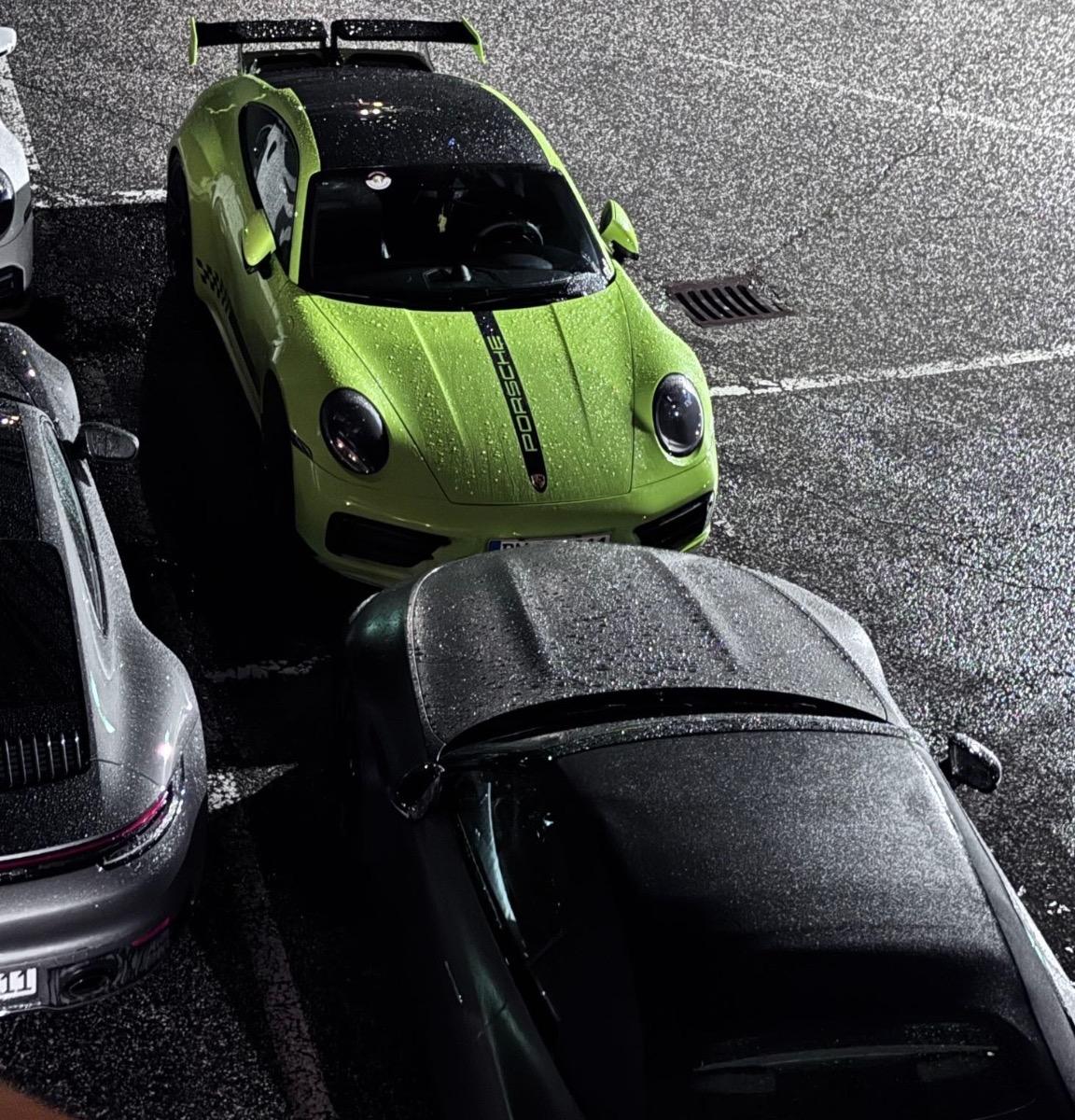 Und ich bin am Rätseln was das für ein beflügeltes giftgrünes 911 Derivat ist. Für Turbo fehlen die seitlichen, für einen GT die Ftont-Lufteinlässe. GTS mit Aerokit?