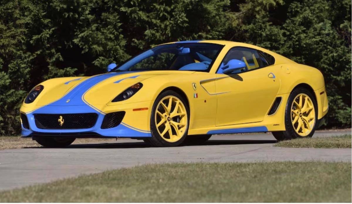 giallo Modena mit Innenausstattung Elektric blue und gelbem Stiching ,  blauen Streifen wird sicherlich auch selten konfiguriert,