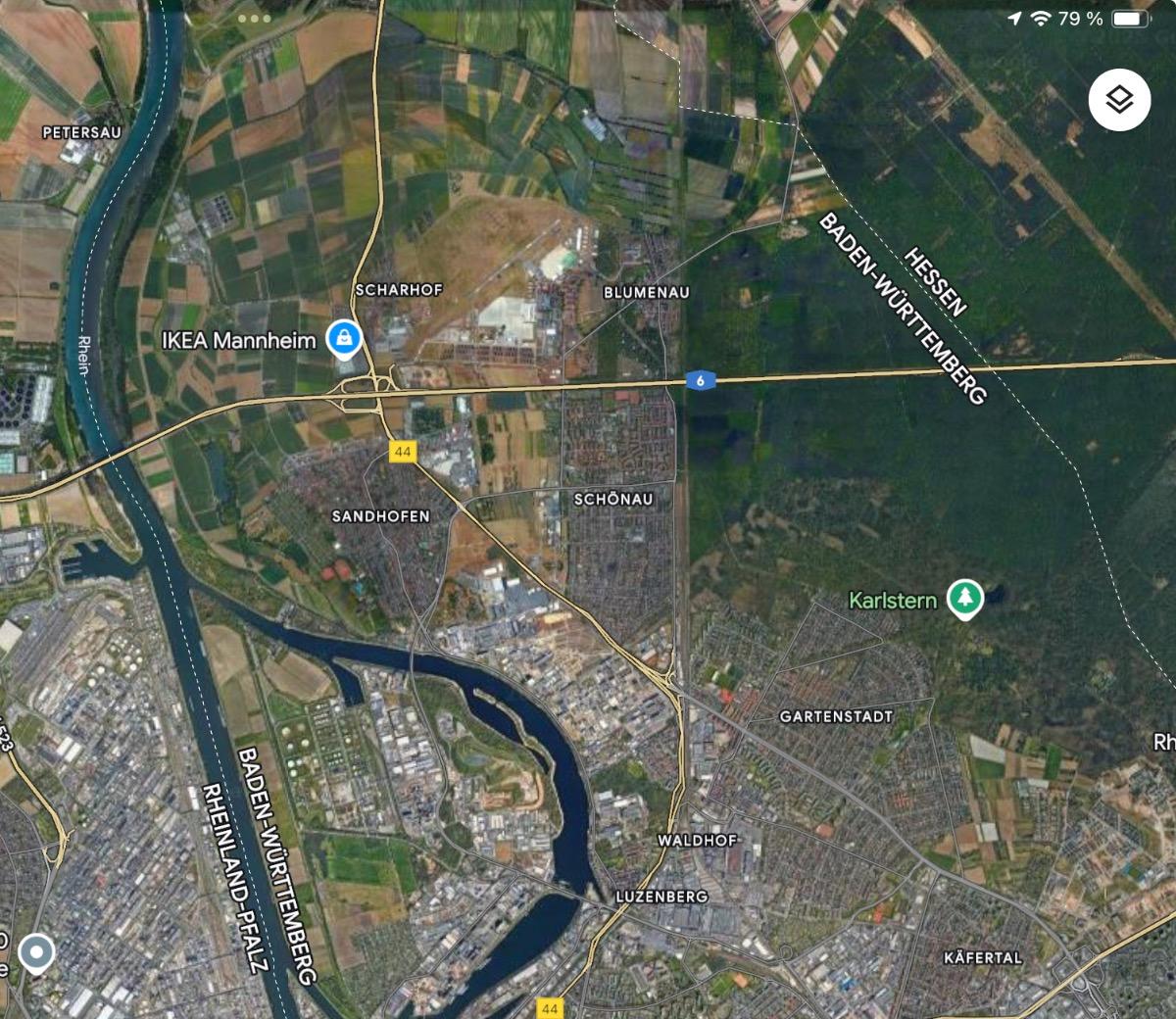 Ich habe es nicht genau gemessen, aber ich denke schonDie Grenze nach Hessen macht ja an der A6 hinter dem Ami Flughafen einen Knick Richtung Pfalz.