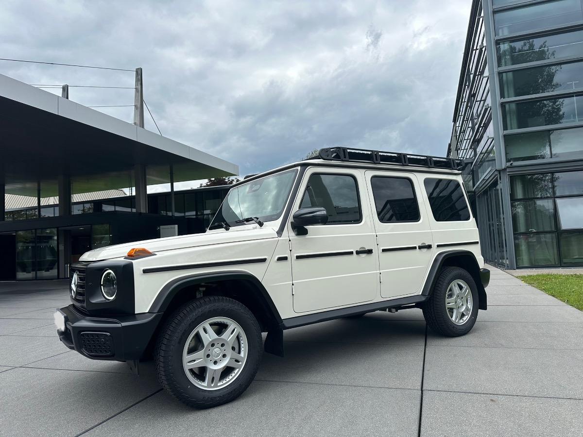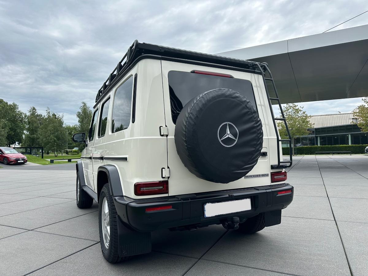 Das Kompliment gebe ich gerne an den Hersteller weiter.✌️Denn außer der Lackierung und dem Dachträger konnte man ab Werk nichts wählen. 🤷‍♂️ Das Auto ist von Mercedes den vorher ausgewählten Kunden so fertig angeboten wurden. Finde ihn aber mit den Stoffkarositzen, den orangenen Blinkern und dem alten Mercedes Benz Schriftzug hinten, alles analog zum Ur-G von 1980, schon ganz gut getroffen.