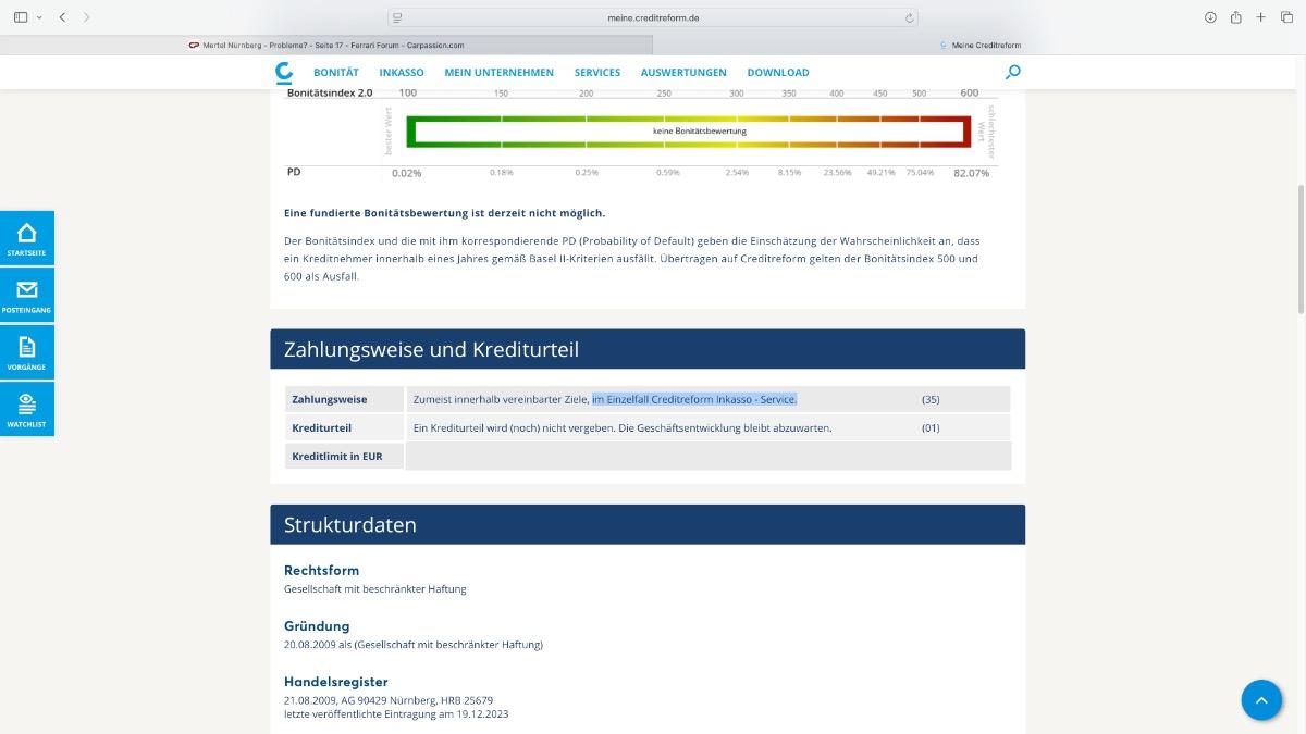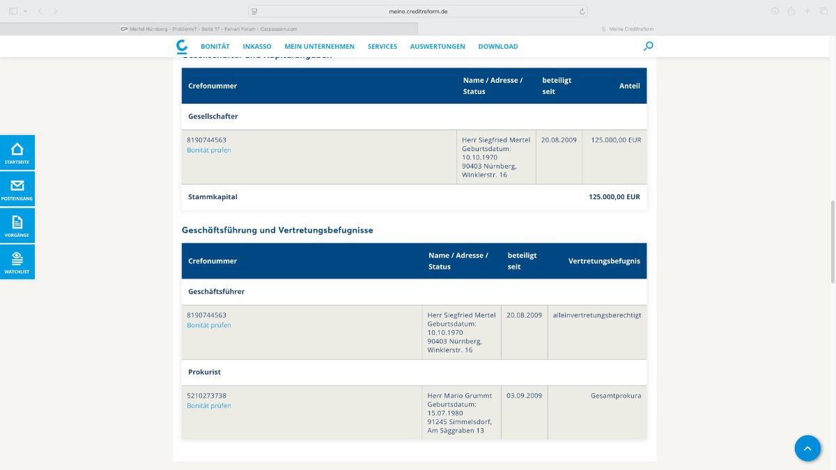 Er hat selbst seinen Boniindex ausschalten lassen, der hat vorgearbeitet weil bei Crefo mit Einträgen im Einzelfall Crefo Inkasso gehts Minimum über 400 und somit Bonität keine mehr vorhanden, selbst das hat er manipuliert, der wusste wie es geht... aber vielleicht habe ich mich in dem letztes Post zu weit aus dem Fenster gelehnt, ich kann mir nicht vorstellen das Herr Mertel in einem Gebäude privat wohnt, wo ein 3 Sterne Hotel ist... vielleicht ist das auch der Grund warum er noch auf freien Fuss ist.
