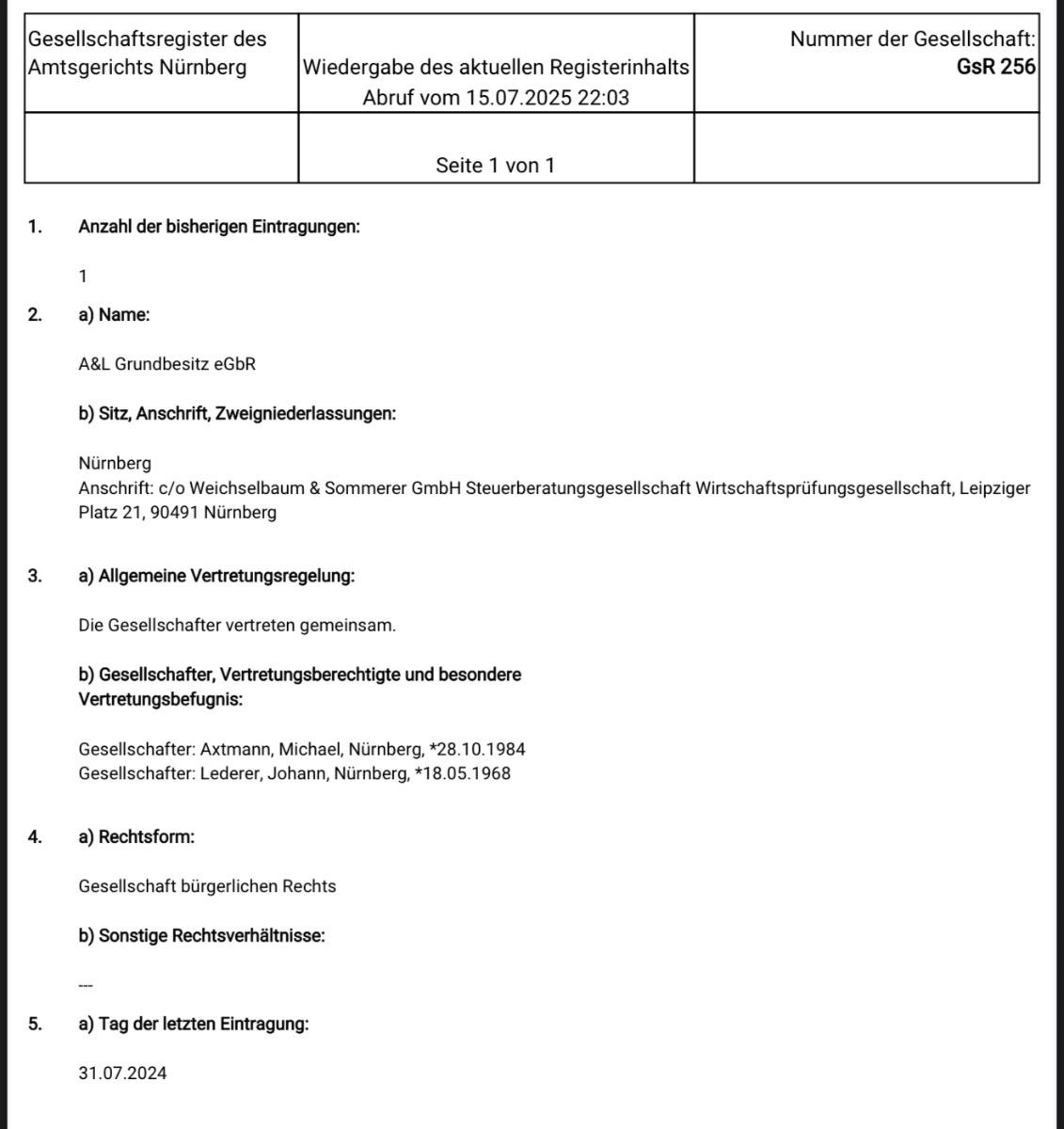 Das Gebäude gehört einer GbR, die vor nicht einmal einem Jahr gegründet wurde!?