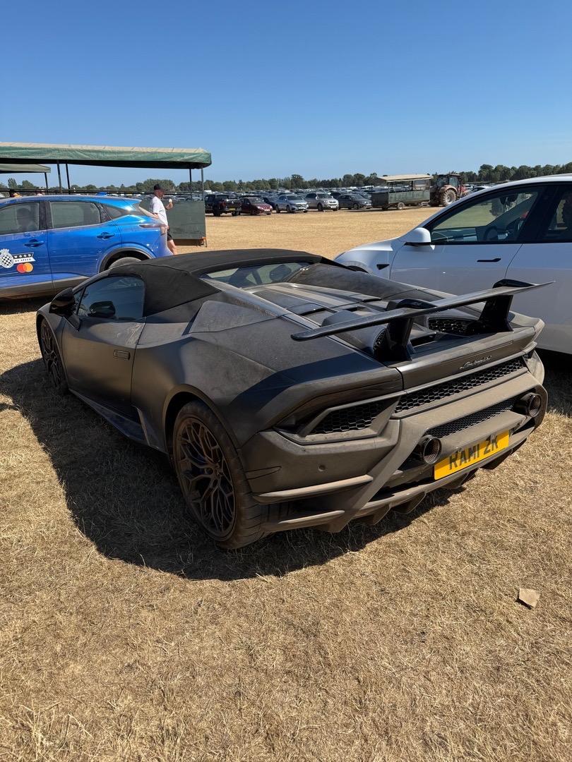 3. Das parken in Goodwood ist dann auch so eine Sache. Mit dem Fahrservice fahre ich bis 20m vor den Eingang und lasse mich dort auch wieder entspannt abholen. Mit dem eigenen Auto kannst du schon mal eine ganz schöne Strecke weg stehen und evtl. einen Wandertag morgends und Abends machen. Je nach Wetter ist dann Abends evtl. das Auto komplett eingestaubt ( wie dieses Jahr ), weil es staubt wie Hölle ( siehe Bilder unten von dem Lambo ), oder wenn es richtig regnet, helfen auch gerne mal die Traktoren beim rausziehen von Sportwagen aus dem Matsch...