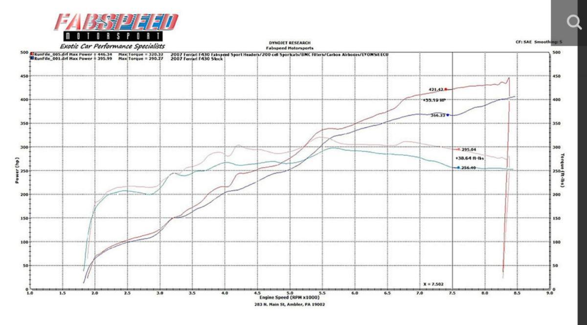 Mir ist z.B. aufgefallen das Fabspeed mit einem Diagramm beim 430 wirbt, welches ich so zumindest anzweifeln würde. Der Motor mag 4in2in1 Krümmer wie die Capristo viel lieber als 4in1, die eigentlich immer Drehmoment verlieren. Die Kurve bekommst eigentlich auch mit Software und anderen Maßnahmen nicht so geglättet oder sogar mit einer deutlichen Steigerung in allen Lagen, wie von Fabspeed propagiert. Ich hatte schon original Krümmer, iPE (baugleich mit Fabspeed), Challenge, Kline und Capristo verbaut und alle auf dem Prüfstand.