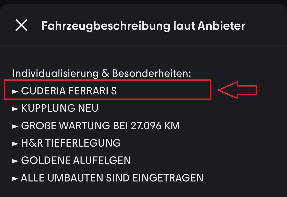 Ihr habt scheinbar vergessen das der Wagen gemäß Inserat eine Besonderheit hat, die ihn eigentlich zu einem begehrten One-Off macht.. Es handelt sich dabei um einen echten "CUDERIA FERRARI S"...