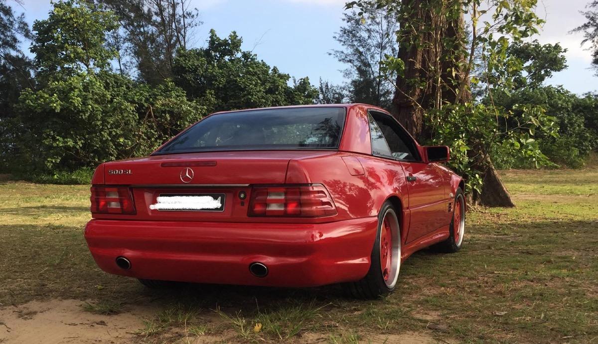 Die modifizierte Heckschürze ist anscheinend nicht nur dem SL73 AMG vorenthalten geblieben. Das folgende Bild zeigt einen 500SL (nicht auszuschließen, dass hier nach Umbau bei AMG die Typenbezeichnung nicht entfernt wurde) mit identischer Heckschürze wie der oben abgebildete, silberne SL 73 AMG in den Garagen der BRF. Das rotfarbene Exemplar ist nach wie vor in Brunei, jedoch nicht mehr im Besitz der königlichen Familie.
