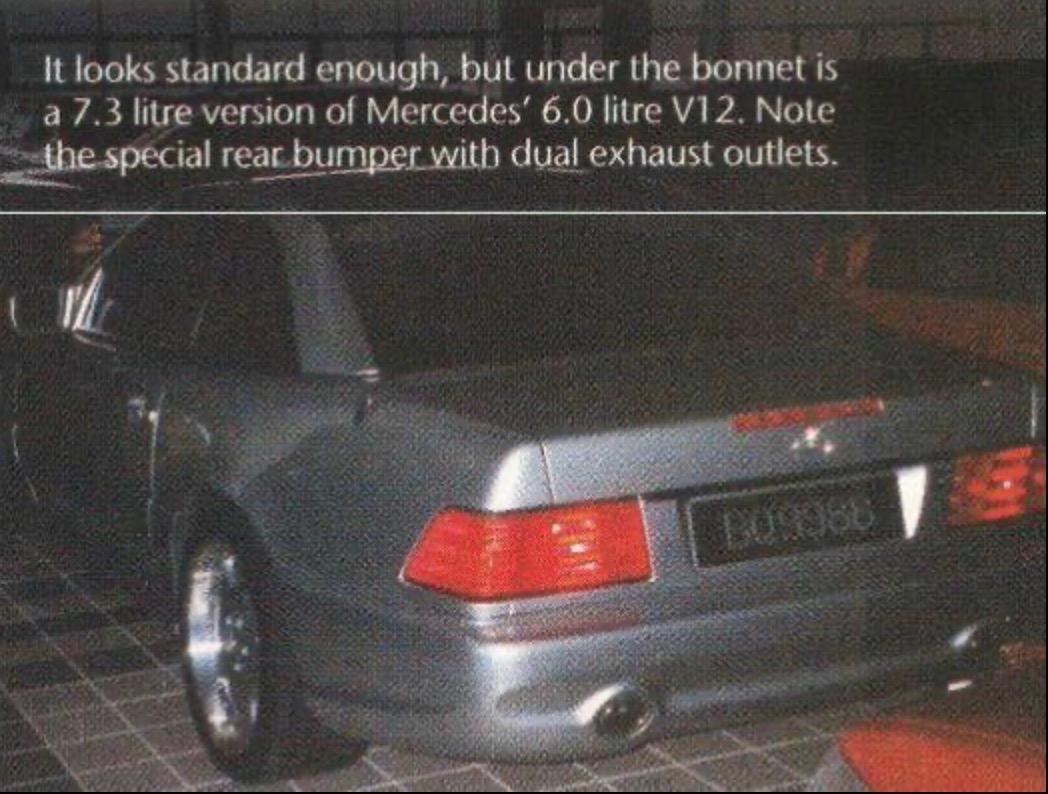 Es war ein linksgelenktes Fahrzeug mit deutschen Kennzeichen sowie einem "Brunei-Bodykit" (und den legendären Brabus Felgen  "Monoblock 2"). Ich meine mich zu erinnern, dass das Leder dunkelblau war, und das Fahrzeug über einen TV-Bildschirm rechts vom Tachometer verfügte.