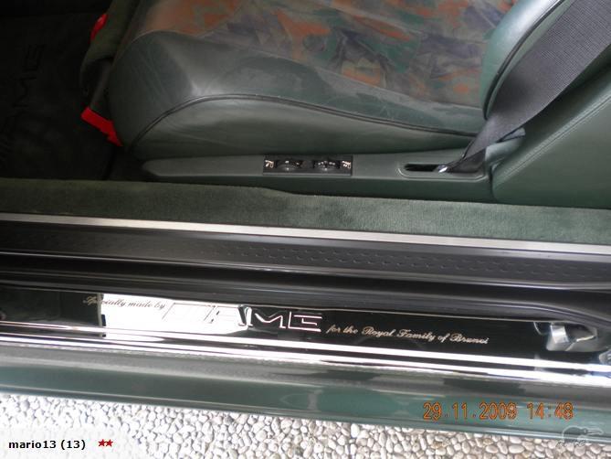 Die Flut an Mercedes (AMG) Fahrzeugen die vom Königshaus geordert wurden, lässt sich anhand der veröffentlichten Fahrzeugliste für eine der zahlreichen Brunei-Garagen nur erahnen. Mit den Jahren kommen Fahrzeuge des Königshaus immer mal wieder in den freien Verkauf und somit auch in die Öffentlichkeit. Zum Beispiel folgender 500SL mit Picasso-Interieur, hier jedoch in Kombination mit einem eher reservierten Lederfarbton, Piniengrün: