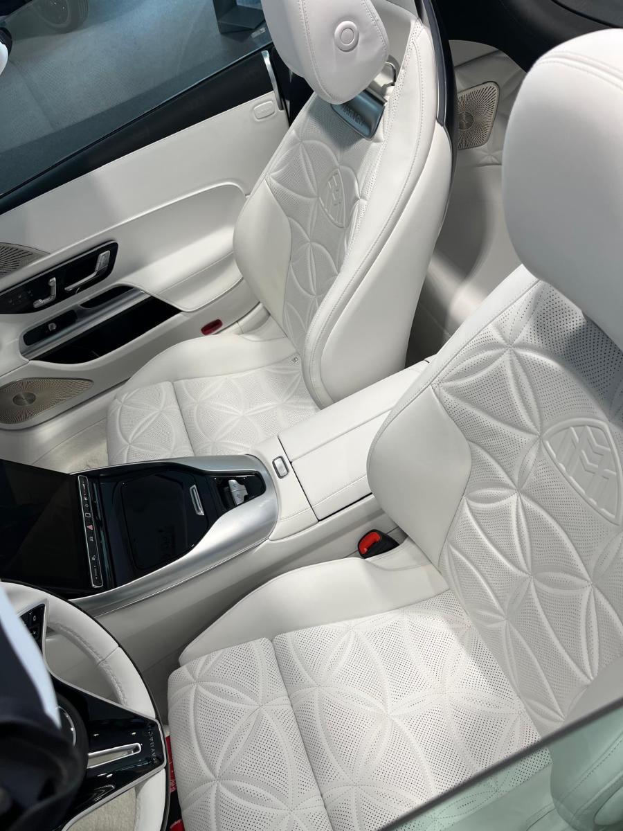 In der gezeigten Spec fand ich den Wagen wider Erwarten recht schön. Mit dem Stylepaket White Ambience (Lackierung in Opalithweiß Magno) und der damit verbundenen Motorhaube in Obsidianschwarz OHNE Maybach Logos kommt das Fahrzeug schon sehr edel rüber. Ohne eine Typenbezeichnung am Heck würde der Wagen nochmals weniger dick auftragen, was mir persönlich noch besser gefallen würde. Die im Vergleich zu den Pressefotos/Präsentationsautos fehlenden Embleme auf der Motorhaube stehen dem Wagen deutlich besser. Diese in meinen Augen immer noch plakative Option ("Mercedes-Maybach Pattern auf Motorhaube" für ca. 8k) geht einfach gar nicht. Ich hatte mich übrigens erkundigt wie die gefühlt 200 Maybach-Embleme auf die Motorhaube kommen. Die Embleme werden in einem separaten Prozess auf die Motorhaube gedruckt und anschließend mit zwei Schichten Klarlack überzogen. Allerdings erhält man mit der Option auch gleichzeitig fünf Dutzend Maybach-Embleme auf das Stoffverdeck gedruckt, was in meinen Augen dann einfach viel zu viel des Guten ist. Der Innenraum, speziell mit seinem Sitzdesign, gefiel mir sehr gut. Insgesamt ein schönes Fahrzeug für den jedoch eher extrovertierten Fahrer.
