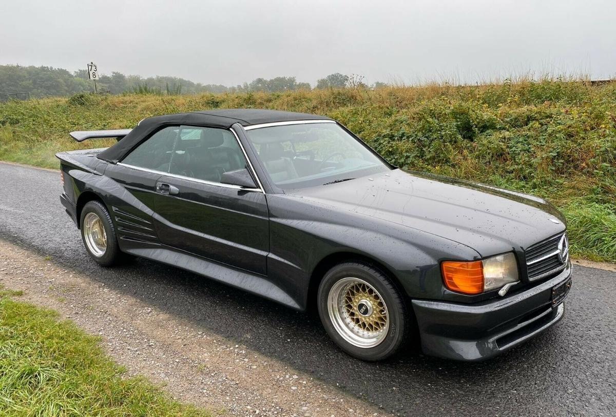 Eine sehr wilde Zeit. Natürlich war rückblickend vieles davon Geschmacksache. Aber Kult sind die Fahrzeuge auch für mich. Ein gutes Beispiel der wilden Mercedes-Umbauten von KOENIG war für mich der 560 SEC Cabrio. Der war mit seinen 345er-Schlappen (siehe Bild) hinten schon extrem breit...
