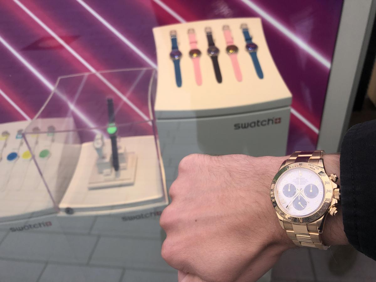 eine art iwatch, das display jedoch programmierbar wahlweise designed als Rolex, mit oder ohne blink-blink, ap oder patek ... oder was der user eben wünscht.