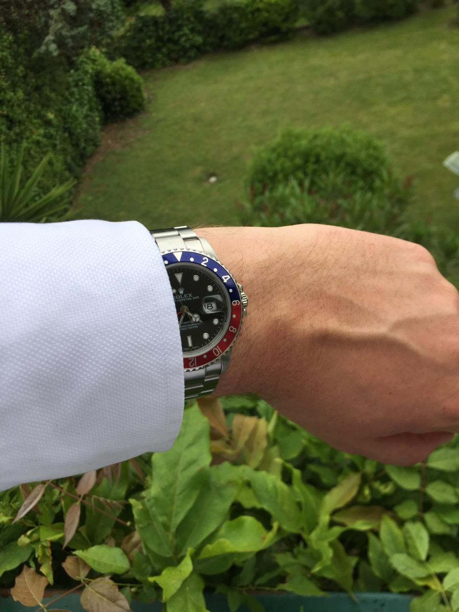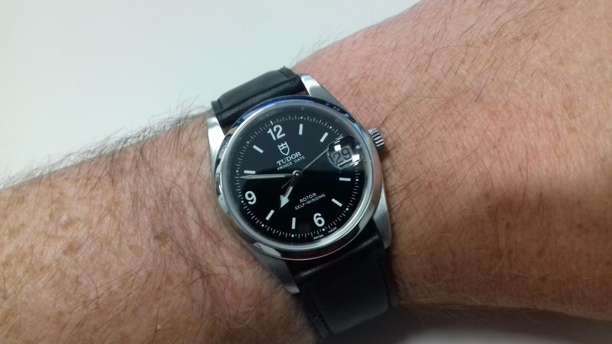 Mein Tischnachbar hat mir kurz für ein Lichtbild seine Uhr überlassen, damit ich endlich mal eine richtige Uhr am Handgelenk trage - nicht immer diese Plastikuhren...