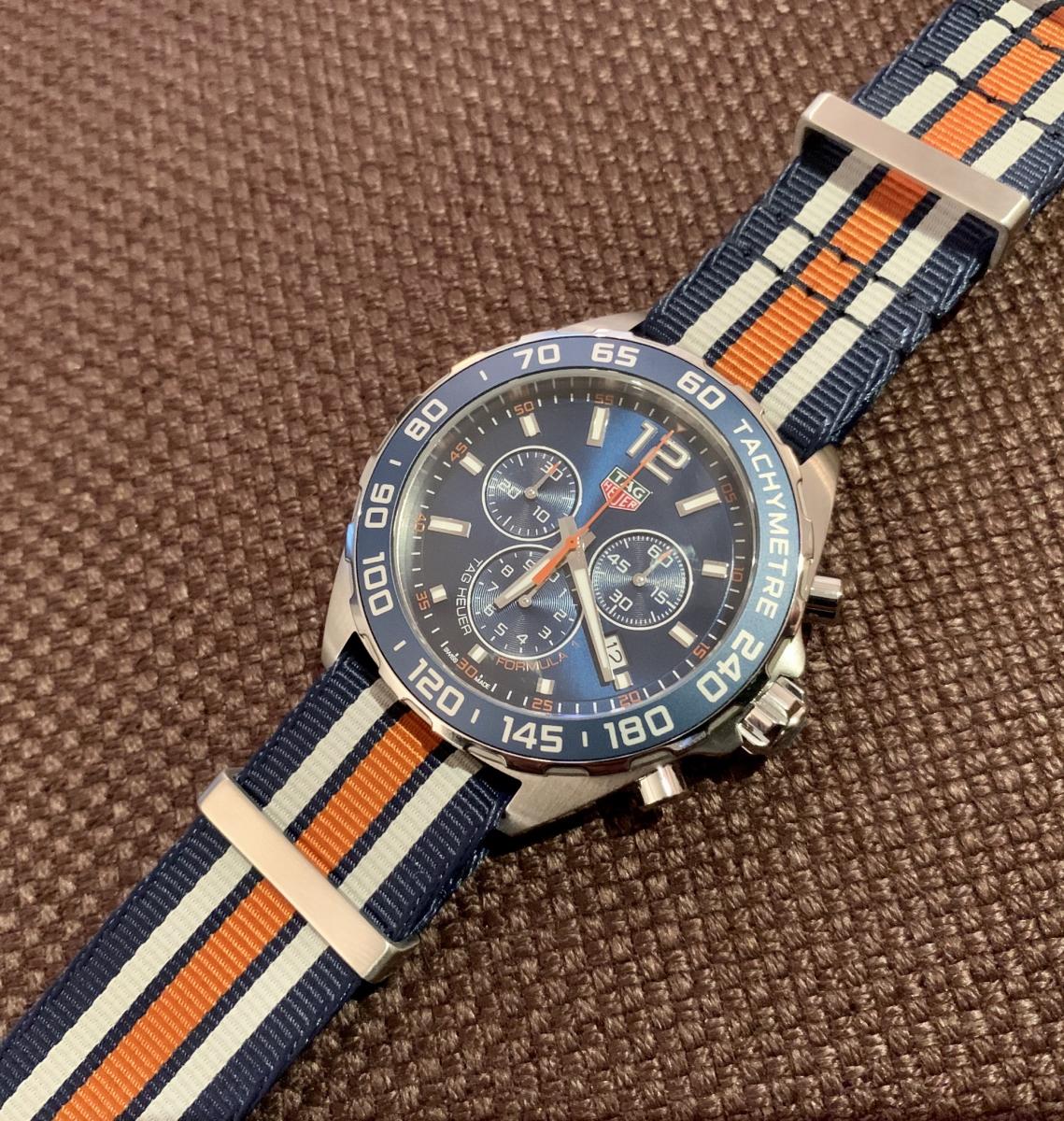 meine neue tag heuer f1 auf minotti, statt handgelenk. für die historischen renn-wochenenden 2020.