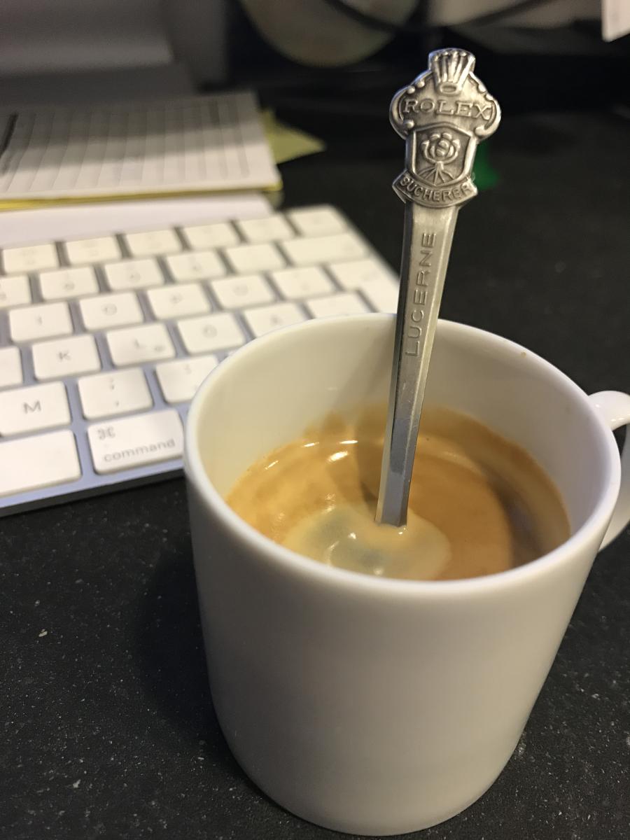 Sah am Handgelenk blöd aus, in der Espressotasse geht es aber ganz gut. Und passt zum Thema ?
