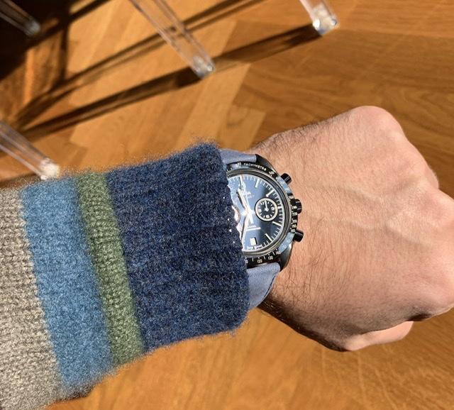 Das ist eine Omega Speedmaster Dark Side Of The Moon. Das Armband ist eine Sonderanfertigung.