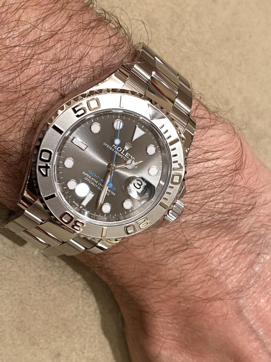 nett, dass mir der händler die uhr aufgehoben hat, bis ich sie heute endlich abholen konnte: rolex yachtmaster rhodium mit platin lünette. bin begeistert 😊🥂5FB19EB0-BAF8-4DE7-93C8-113B39D0277D.thumb.jpeg.200ffe4c88fc907f218c59c75f3ac34e.jpeg