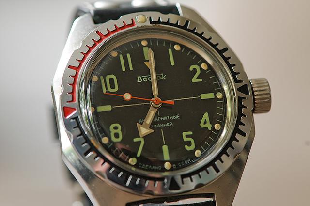 Derzeit eine russische Vostok mit der Typbezeichnung 470-333. Aus den 70ern und damit in einer deutlich höheren Werksqualität als die späteren Massenprodukte aus russischer Fabrikation. Dicht bis 20 bar, magnetische Abschirmung. Läuft bestens seit vielen Jahren, ganz anders als beispielsweise die Askania meine Frau, in denen m.E. neuere russische Werke werkeln und für die vierstellige Preise aufgerufen werden.