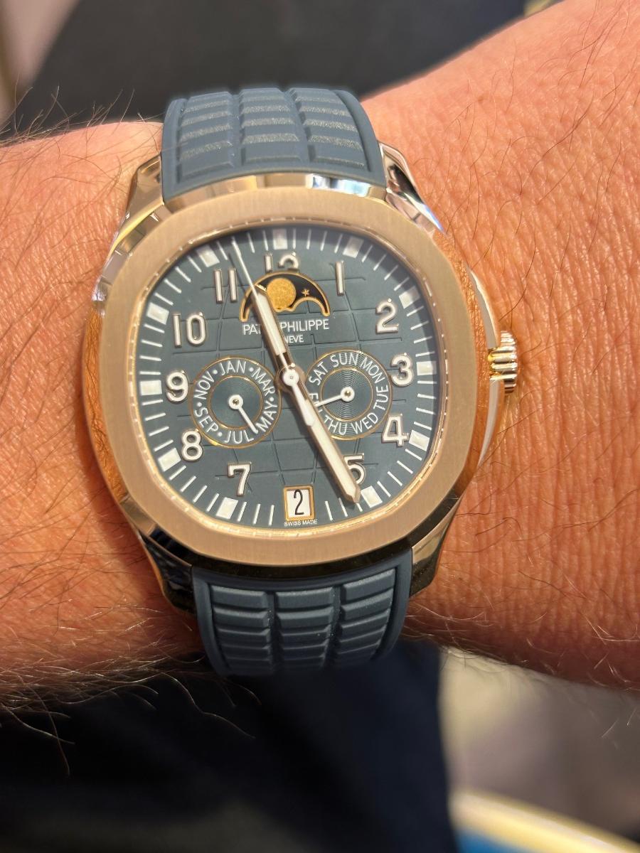 Die andere mit dem Kautschukband wäre mir inzwischen aber in Rosé Gold lieber, da zwei Daytonas in Gelbgold mir eigentlich zu viel sind.