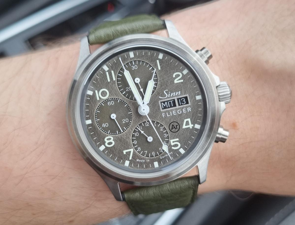 Seit ein paar Tagen bin ich ganz begeistert von der Sinn 358 DS, an der ich ein khakifarbenes Lederband montiert habe. Trägt sich wunderbar, toll ablesbar, eine interessante, jedoch nicht zu aufdringliche Farbgebung, die darf bleiben. 😊