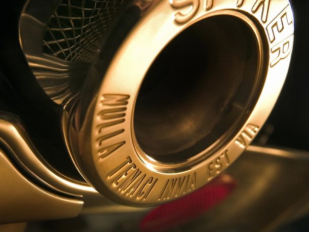 Am Heck finden sich wahlweise zwei oder vier Auspuffendrohre, auf denen das Markenmotto „Nulla Tenaci Invia est Via“ eingraviert ist. Zu deutsch bedeutet es „Für den Hartnäckigen ist kein Weg unpassierbar“. Dieses Motto fand sich bereits auf dem Markenlogo der historischen Marke Spyker und gibt auch deutlich die Marschrichtung der Niederländer wieder. Auch auf dem bereits beschriebenen Schlüssel ist es eingraviert und kann so allen Freunden gezeigt werden, wenn man den Schlüsselbund in der Bar auf den Tresen legt.