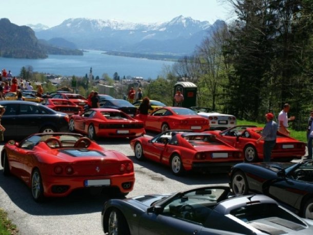 Eine solche Ansammlung hochwertiger Automobile bleibt natürlich niemandem im Umkreis verborgen und so standen bereits Samstag nach dem Frühstück die ersten Besucher aus der näheren Umgebung auf dem Parkplatz und fachsimpelten mit den stolzen Besitzern über die PS-reichen Geschosse. Gleichzeitig wurde jedoch bereits zum Aufbruch gerufen. Es ging über Landstraßen und Autobahnen ins Salzkammergut. Dabei sorgte die reichhaltige Parade allerorten für erstaunte Gesichter und hochgereckte Daumen bei den Passanten.