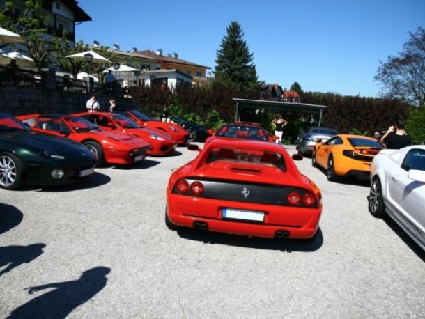 Eine solche Ansammlung hochwertiger Automobile bleibt natürlich niemandem im Umkreis verborgen und so standen bereits Samstag nach dem Frühstück die ersten Besucher aus der näheren Umgebung auf dem Parkplatz und fachsimpelten mit den stolzen Besitzern über die PS-reichen Geschosse. Gleichzeitig wurde jedoch bereits zum Aufbruch gerufen. Es ging über Landstraßen und Autobahnen ins Salzkammergut. Dabei sorgte die reichhaltige Parade allerorten für erstaunte Gesichter und hochgereckte Daumen bei den Passanten.
