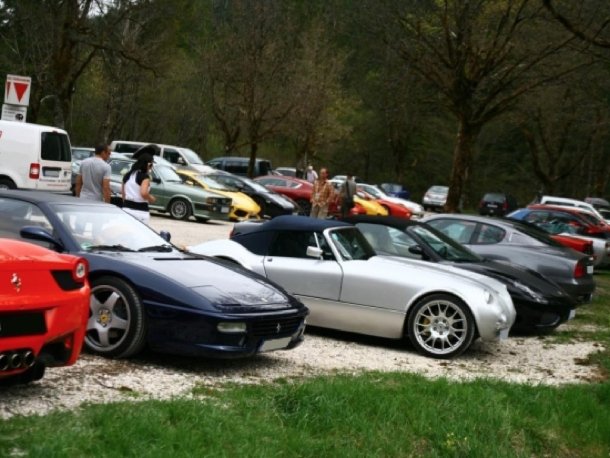 Eine solche Ansammlung hochwertiger Automobile bleibt natürlich niemandem im Umkreis verborgen und so standen bereits Samstag nach dem Frühstück die ersten Besucher aus der näheren Umgebung auf dem Parkplatz und fachsimpelten mit den stolzen Besitzern über die PS-reichen Geschosse. Gleichzeitig wurde jedoch bereits zum Aufbruch gerufen. Es ging über Landstraßen und Autobahnen ins Salzkammergut. Dabei sorgte die reichhaltige Parade allerorten für erstaunte Gesichter und hochgereckte Daumen bei den Passanten.