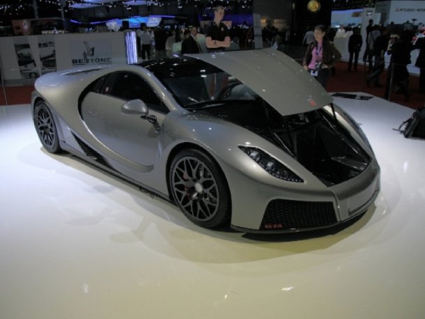 Nachdem letztes Jahr an gleicher Stelle ein fahrfähiger Prototyp ausgestellt war, macht der spanische Hersteller GTA Motors nun Ernst und bringt den Spano genannten Supersportwagen in die Kleinserie. Lediglich 99 Exemplare des 820 PS starken Fahrzeugs werden in Handarbeit und nach Kundenwunsch ausgestattet entstehen. Für den Spurt auf Tempo 100 vergehen weniger als 3 Sekunden, während die Höchstgeschwindigkeit jenseits von 350 km/h liegt. Die Form der Karosserie versetzt den GTA Spano zweifelsfrei in die passende Sparte. Einzig der Öffnungsmechanismus der vorne liegenden Kofferraumklappe, die sich in Richtung Windschutzscheibe an vier Scharnieren bewegen lässt, fällt ein wenig aus der gewohnten Ordnung.