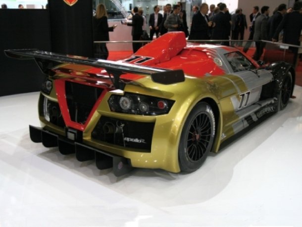 Gerade von hinten stellt der neue Gumpert Apollo R seine kompromisslos auf die Rennstrecke ausgerichtete Einstellung klar.