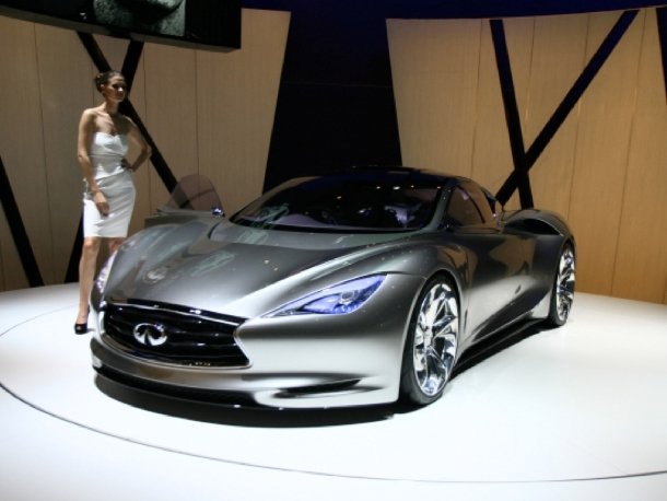 Der Infiniti-Stand war deutlich sportlicher geprägt, als in den Vorjahren. Das lag vor allem am Supersportwagen-Konzept Emerg-E, einem rassig geformten Fahrzeug mit Elektroantrieb. Dieser wird durch einen 1,2 Liter großen Benzinmotor, der als Range Extender arbeitet, auf Spannung gehalten. Ob ein solcher Sportwagen – mit konventionellem oder alternativem Antrieb – in Zukunft im Modellprogramm von Infiniti zu finden sein wird, ist bislang noch nicht bekannt. Neben einem Formel 1-Showcar des Teams RedBull, das von Infiniti unterstützt wird, stand der bereits von der IAA bekannte FX 45 in der Sebastian Vettel Version. Dieser Sport-SUV mit 420 PS und Sichtcarbonanbauteilen wird noch in diesem Jahr in Kleinserie gehen.