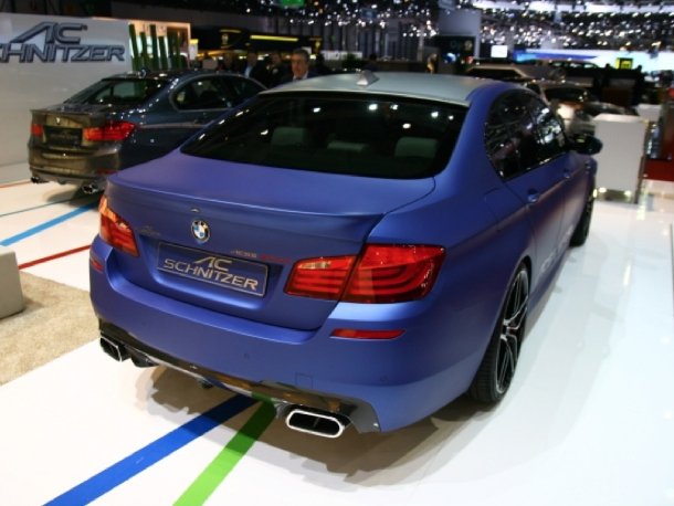 AC Schnitzer zeigte mit dem 620 PS starken ACS5 Sport die hauseigene Veredelung des neuen M5. 790 Newtonmeter Drehmoment lassen die Limousine in 4,1 Sekunden auf Tempo 100 schießen. Die Höchstgeschwindigkeit wird auf 305 km/h angehoben. Wer mit der mattblauen Erscheinung des Präsentationsfahrzeugs nichts anfangen kann, darf den ACS5 Sport gern auch ohne Folierung bestellen.