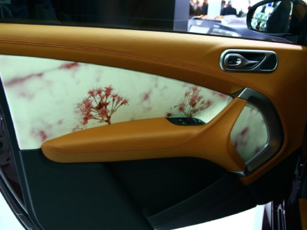 In den Türen und am Dachhimmel zeigte Q by Aston Martin eine neuartige Lederveredelung mittels Foto-Technik.
