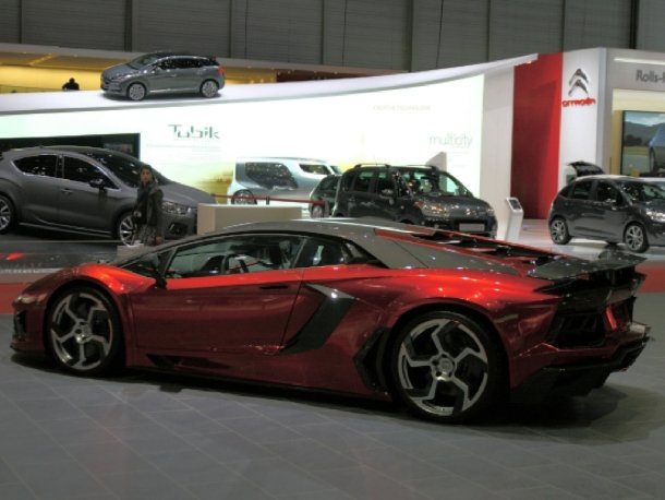 Während die IAA für Mansory-Verhältnisse durchaus bieder war, zeigte man in Genf erneut einige spektakuläre Neuheiten. Der vorab angekündigte McLaren MP4-12C wurde in Genf von einem Lamborghini Aventador, einem Bentley LeMansory II und einem Mercedes CLS 63 AMG flankiert. Sicherlich dürfte dem ersten Stier aus dem Hause Mansory nebem dem McLaren die meiste Aufmerksamkeit zuteil geworden sein. Neben einer auffälligen roten Lackierung wurde das Fahrzeug nach Art des Hauses mit viel Carbon verziert. Um das sicherlich nicht gerade unspektakuläre Design der Basis weiter zu verfeinern, wurden die Lufteinlässe an der Front vergrößert und mit LED-Tagfahrleuchten ausgestattet, sowie ein Heckflügel aus Carbon montiert. Auch motorseitig wurde Hand angelegt und so dürfen nun 754 muntere Pferdchen über den Antriebsstrang herfallen. Ähnlich modifiziert zeigte sich der McLaren.